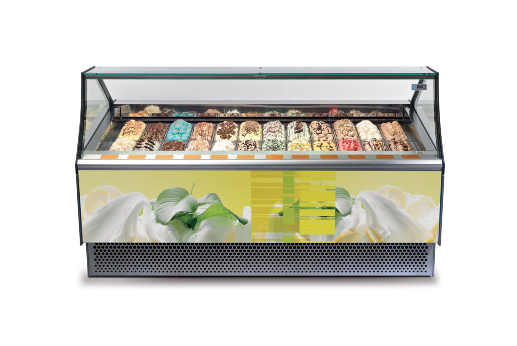 Ce comptoir à crème glacée professionnel Milleniun JX ou Gaïa JX vitre incurvée de 12 à 24 bacs est spécialement étudié par ISA-COF réfrigération pour présenter et conserver vos glaces artisanales. Sa ligne très design avec sa vitre incurvée et son éclairage LED mettront en valeur vos bacs de présentation.