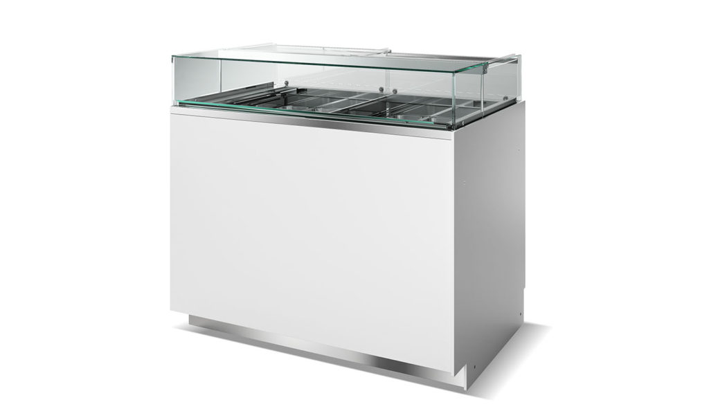 Vous pouvez choisir entre deux versions avec des profondeurs différentes. Kelly 80 prend très peu de place et s’intègre dans n’importe quel contexte en un rien de temps. Kelly 100 est le meilleur que l’on puisse trouver pour un usage professionnel : il peut également accueillir les nouveaux bacs à glaçons de 50 cm (seulement kelly 80) et les très grands bacs à nourriture.