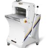 La mouleuse laminoir mod.fr 2c est une machine qui résout les problèmes des petites boulangeries, ou l’espace est limité, elle est construite en duralumin et acier, les cylindres de 500-600 MM, de long sont rectifiés et chromés . elle est élégante et dotée de deux manchons de feutre très restants et de longue durée. Elle est montée sur quatre roulettes pivotantes avec système de retour des pâtons enroulés. Il est possible de passer du laminage ou moulage avec la machine en mouvement, en actionnant une commande spéciale située sur la partie antérieure de la machine. Elle est dotée d’un dispositif pour la prévention des accidents
