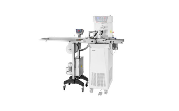Le chariot NRD12 est parfait pour la production de pralines et pâtisseries en partant des biscuits jusqu’aux gâteaux. La grille de chargement peut être arrêtée pendant le positionnement du produit à enrober, puis elle reprendre le mouvement à la simple pression du bouton. Grâce à ce système spécial, toute la procédure peut se dérouler avec une seule personne qui pourra facilement se déplacer de la zone de chargement et d’enrobage au tapis de sortie du produit. Le chariot est équipé d’un égouttoir vibrant, d’un dispositif briseur de filaments et de soufflerie et il est démontable; en décrochant la bande-grille d’enrobage, où aucun composant électrique est monté, il est possible d’effectuer un lavage soigné. La bande-grille a une largeur de 200 mm. Il est possible d’utiliser le chariot aussi comme chariot pour les truffes en détachant la partie du tapis.