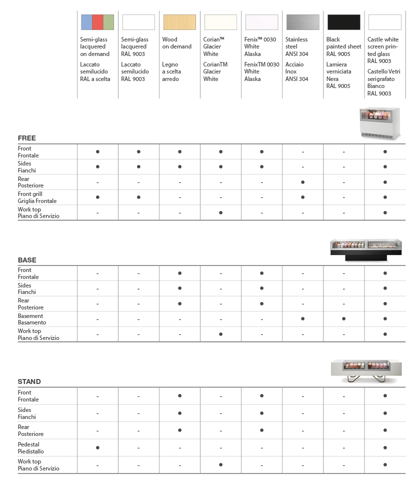 Conçu avec une flexibilité maximale pour permettre la gestion saisonnière de l’affichage des produits. La fonction Dual Temperature (en option) permet à la vitrine de changer simplement, la température de fonctionnement des produits de crème glacée et de pâtisserie. Cela permet à une armoire d’offrir une flexibilité saisonnière sans augmenter la surface au sol.