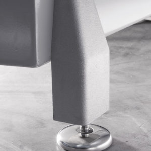 • Crémaillère en acier peint surélevée du sol sur 4 pieds réglables.