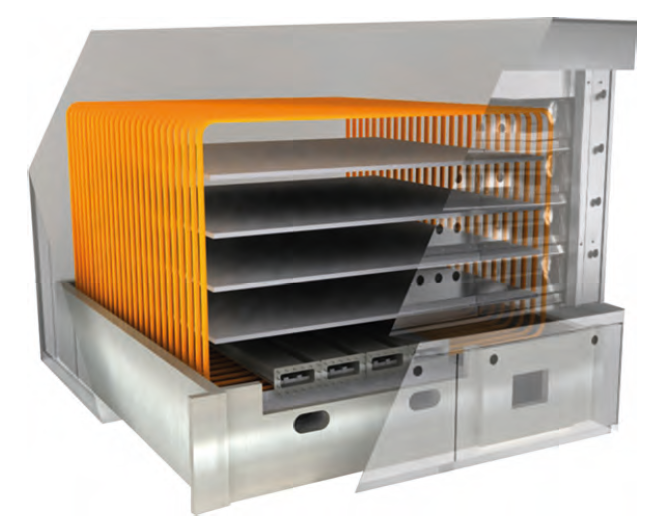 Ces plaques assurent une répartition parfaite de la chaleur sur toute la surface. Chaque chambre est fabriquée en acier inoxydable et alimentée par de puissants générateurs de vapeur qui laissent entrer de grandes quantités de vapeur. Le puissant système de vapeur est indépendant pour chaque chambre de cuisson. Sa conformation technique et ses matériaux à haut rendement permettent une expansion immédiate de la vapeur, qui pénètre en grande quantité dans la chambre de cuisson.