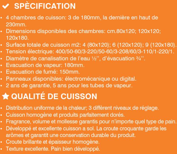 • Générateurs de vapeur indépendants pour chaque chambre de cuisson.